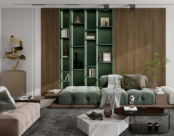 Aplikasi hiasan dalaman termasuk pelbagai kehijauan yang berdekatan dengan alam semula jadi, suasana hotel yang hangat, ruang mewah, keselesaan minimalis, reka bentuk countertop harmoni dan tahan lama, nostalgia retro, gaya minimalis dan nordik yang hangat, dan banyak lagi.